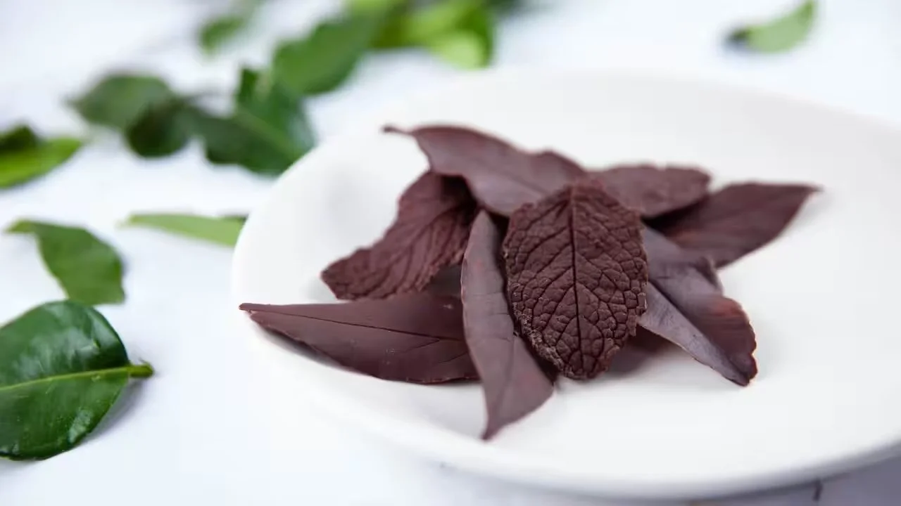 Transfer coated leaves to a parchment‑lined tray. Refrigerate 5–10 minutes until the chocolate is firm.